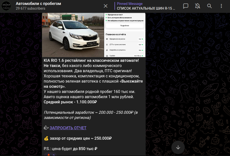 Почти каждый день команда менеджеров выкладывает посты с автомобилями в телеграме ASP Avto. Далее пользователю надо написать представителю команды, чтобы получить дальнейшие указания. К слову, последняя публикация за 20 ноября 2025 года посвящена автомобилю KIA RIO 1.6 в рестайлинге. Стоимость — от 1.1 миллиона рублей.