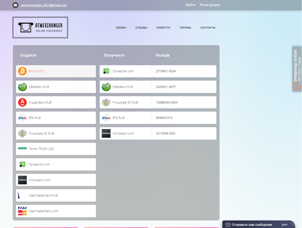 Служба поддержки Atmexchanger Online Exchanger