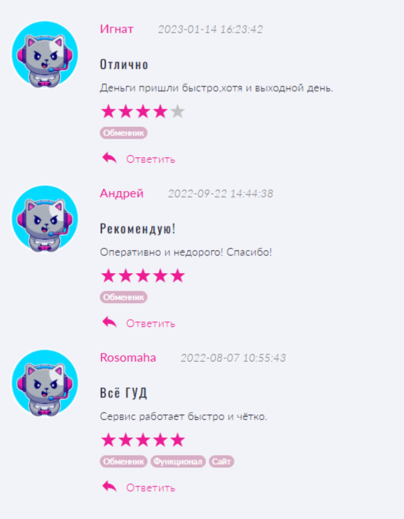 Отзывы об услугах Atmexchanger в целом положительные. Жалоб на обман со стороны сервиса нет. Недовольство высказывают в части требования персональных данных, что является опасным фактором, но компания заранее предупреждает об этом и каждый должен понимать связанные с этим риски.
