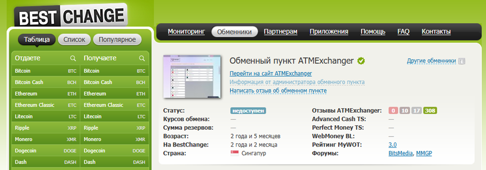 Сервис Atmexchanger представлен на популярном мониторинге BestChange. Отзывы в целом благожелательные.