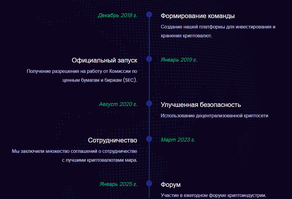Но на сайте рассказывают другую историю. В дорожной карте расписаны события с декабря 2018-го. Формирование команды. Официальный запуск в январе 2019 года. Звучит солидно. Только вот проблема – домен свежий. Либо врут про историю, либо раньше работали под совсем другим именем. Но тогда зачем скрывать прошлое.