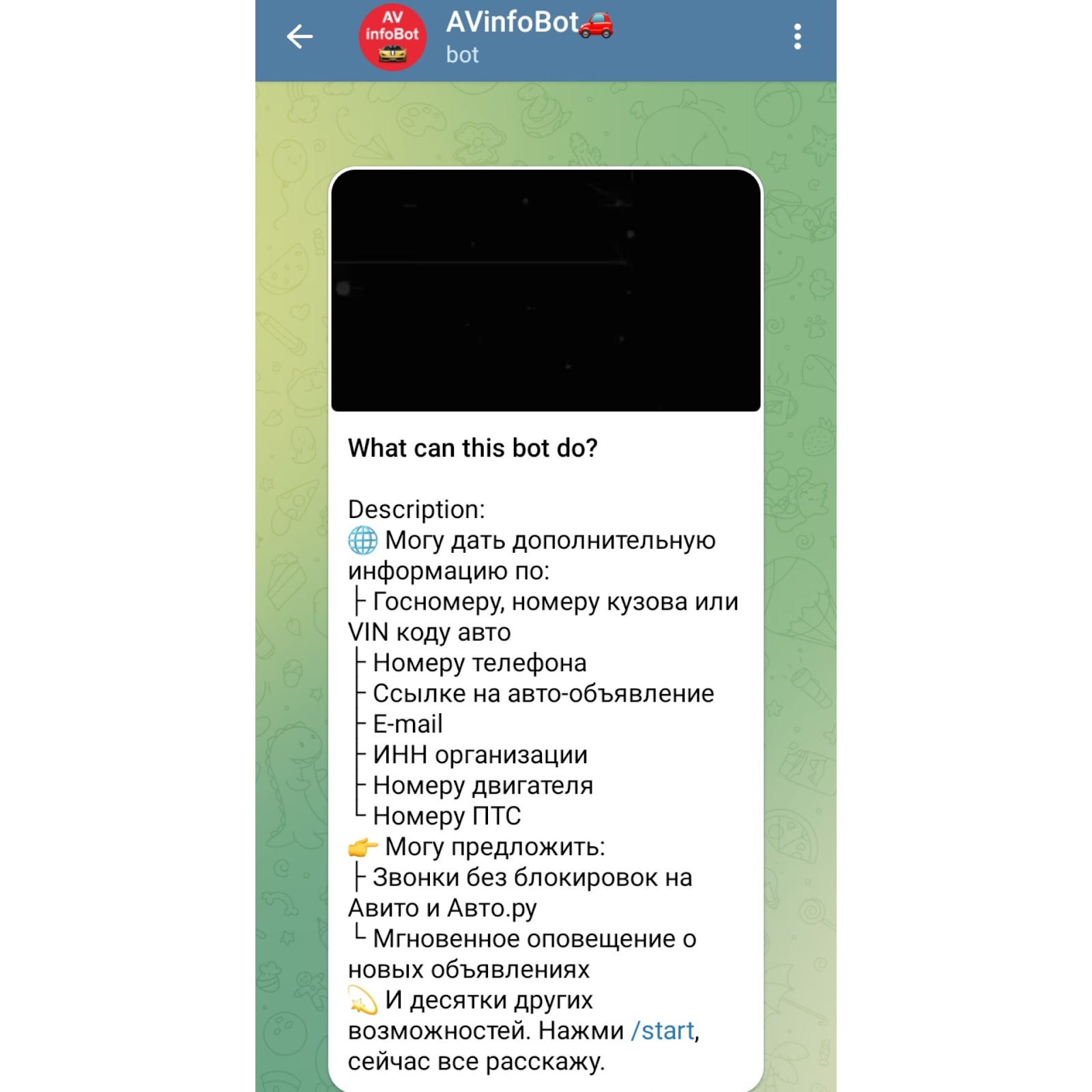 После того как пользователь запустит Телеграм-бота Ав Инфо, сможет изучить его основные услуги: