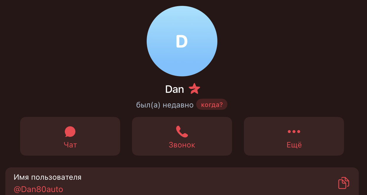 Единственный контакт для связи и поддержки клиентов, приведенный на канале — Dan80auto. О нем неизвестно ровным счетом ничего: профиль безликий, нет даже фотографии. Отсутствие официального сайта, электронной почты и запасных каналов связи делает сотрудничество с сервисом слишком рискованным.