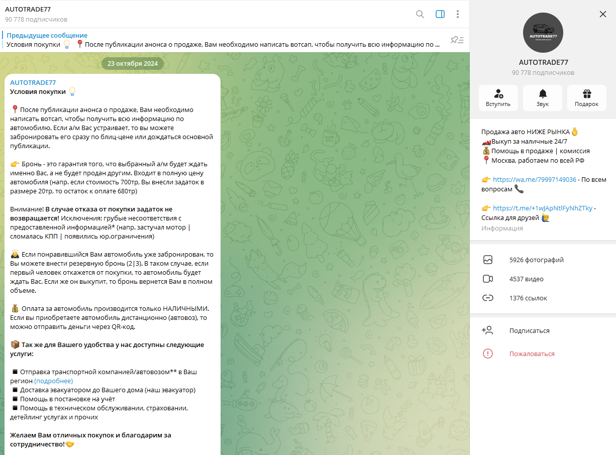 Обзор телеграм-магазина по продаже автомобилей «Автотрейд 77»: проверка условий работы и отзывы клиентов о покупках в Avtotrade77