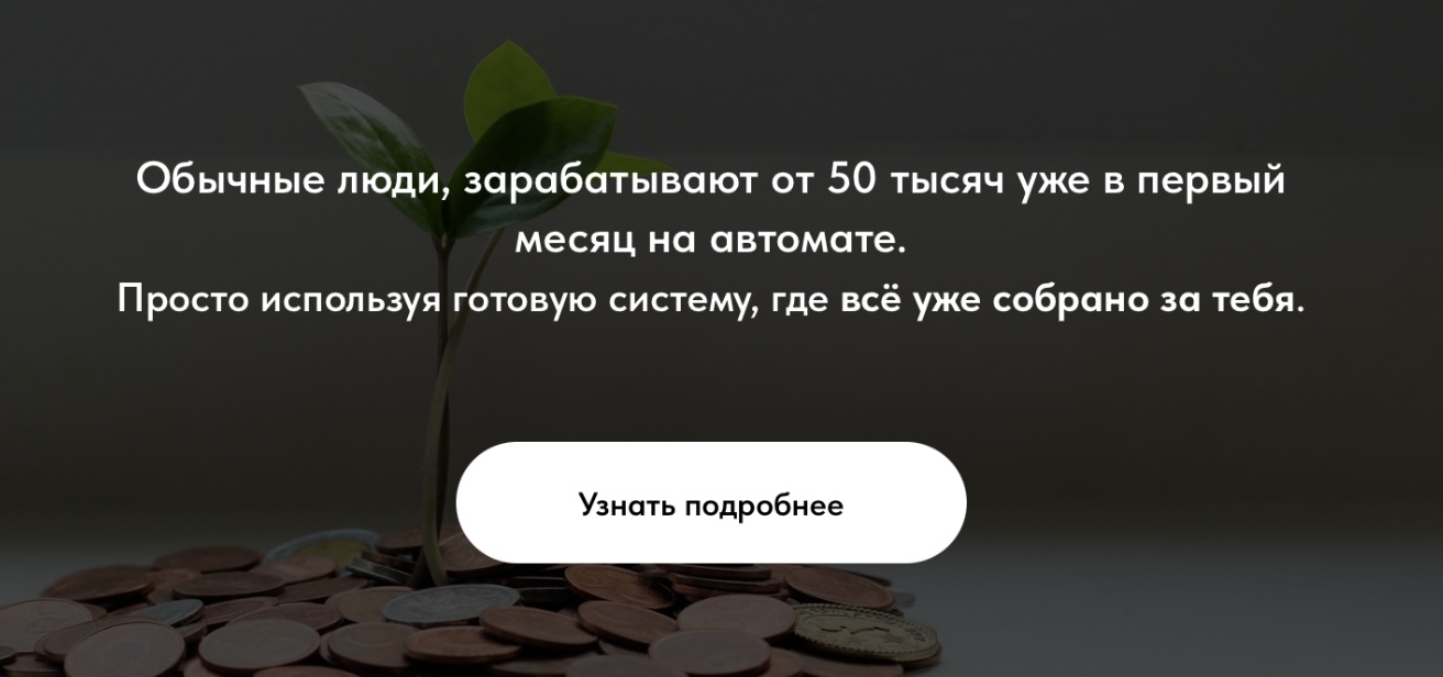 Знакомство с проектом начинается с сайта Babkipartnerki ru, который представляет собой простой одностраничный лендинг на Тильде. Там мы узнаем, что разработчики нашли возможность зарабатывать от ₽50000 в месяц каким-то элементарным способом.
