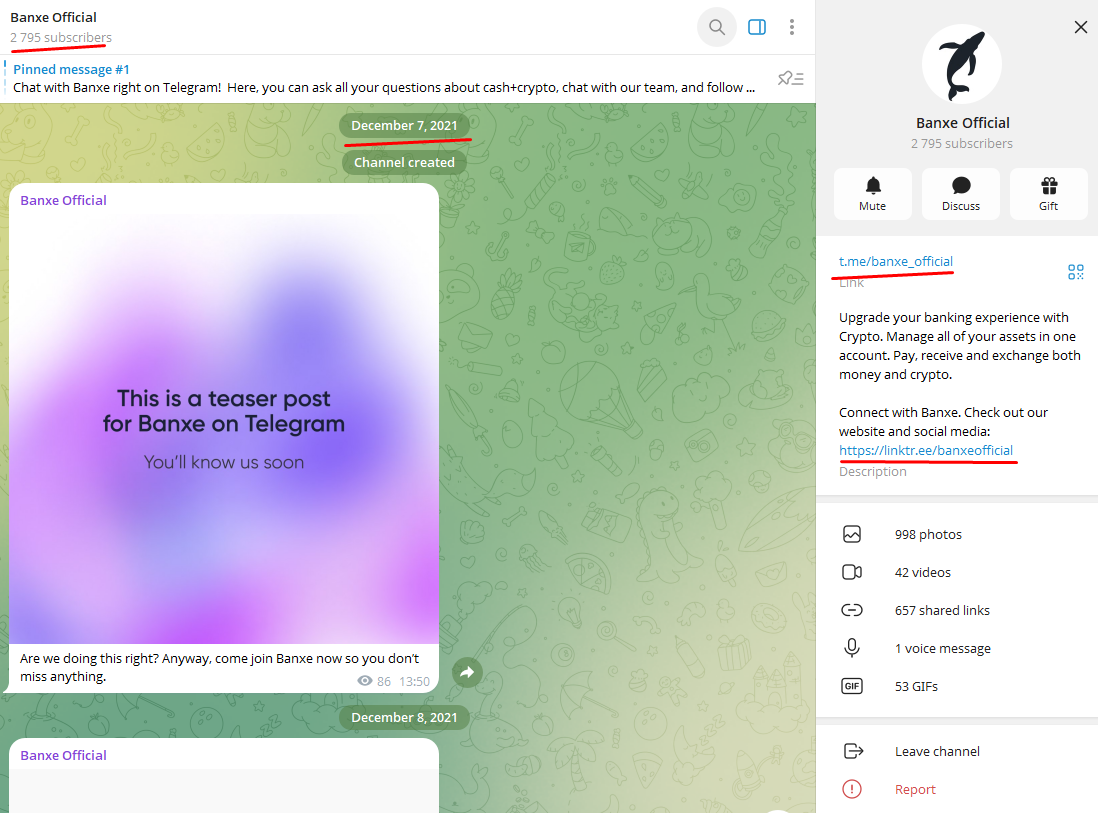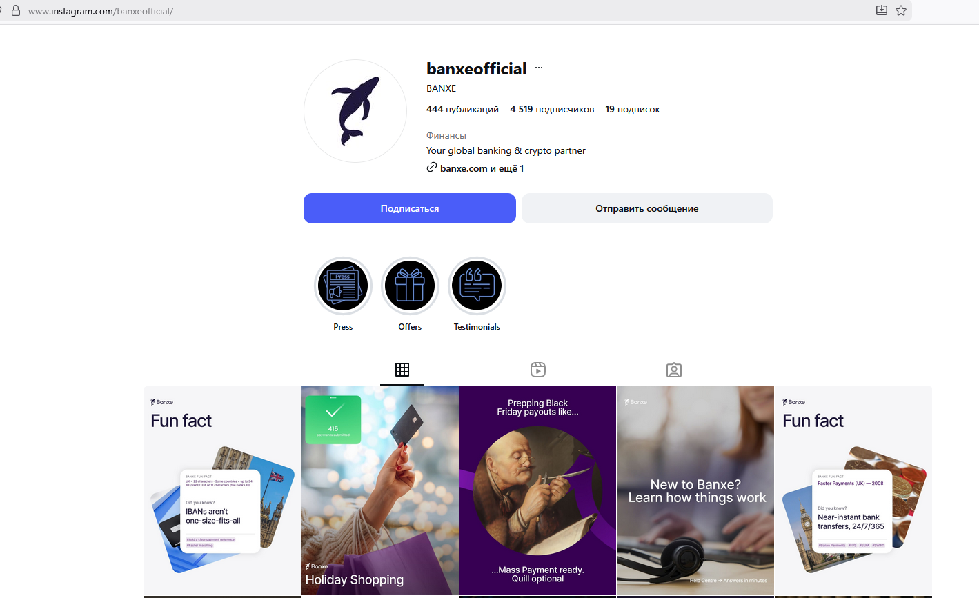 - Функционирующий с 2021 года Telegram-канал banxe_official.
