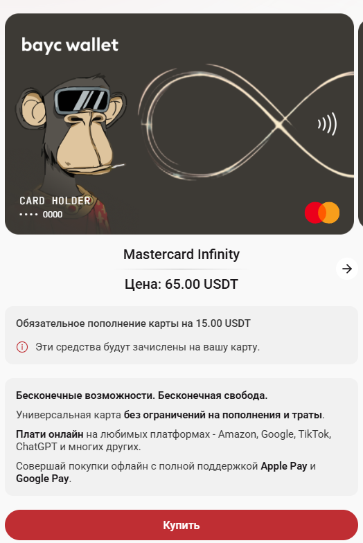 Bayc Wallet предлагает три типа карт: