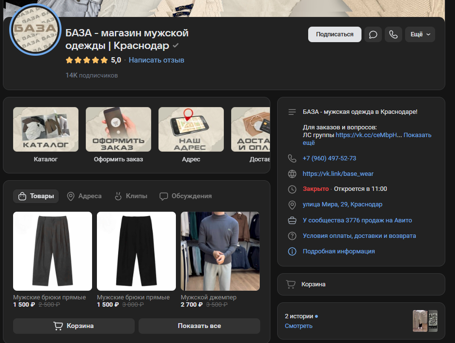База – магазин мужской одежды в Краснодаре, который работает оффлайн и онлайн. Он представлен в Телеграме и в ВК, кроме того, объявления от представителей платформы можно найти на Авито. Магазин База мужская одежда отзывы в сети собрал преимущественно положительные. В ходе обзора расскажем подробнее о данном проекте.