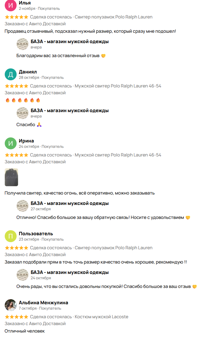 Отзывы о вещах от База, которые размещены в Телеграмм, в целом, повторяются и на Авито по своему содержанию. О них расскажем подробнее.