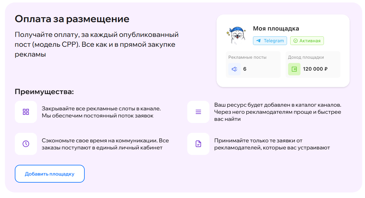 • Экономия времени на поиски рекламодателей;
