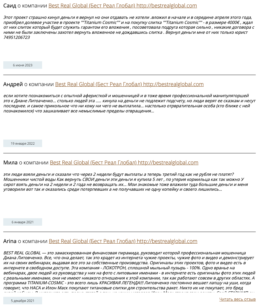 Отзывы о bestrealglobal com
