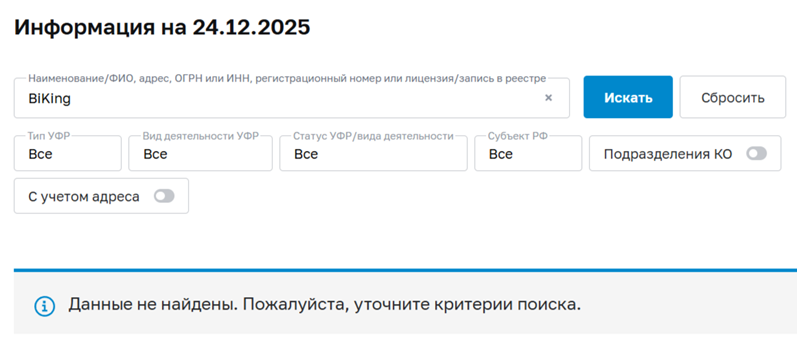 На сайте BiKing указан период работы 2016-2025 гг. Проверка показала, что доменный адрес был зарегистрировано в 2021 году, а в 2023 перешел к рассматриваемой бирже. Это расхождение не стоит считать ошибкой, так как это специальное искажение данных, чтобы создать впечатление о длительной работе на рынке. Еще сомнительно выглядит беспричинная блокировка аккаунта клиента и невозможность перевести средства на свой счет.