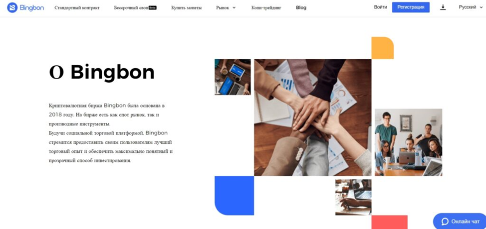 Bing Bon позиционируется в виде криптосоциальной торговой биржи. Как указано на сайте, пользователям предоставляется доступ к разным рынкам: спотовому, деривативному и копитрейдингу. Сервис работает в более чем 100 странах. Услугами могут пользоваться новички и эксперты. Это платформа для тех, кто желает работать без лишних проблем, вкладываясь в цифровые активы.