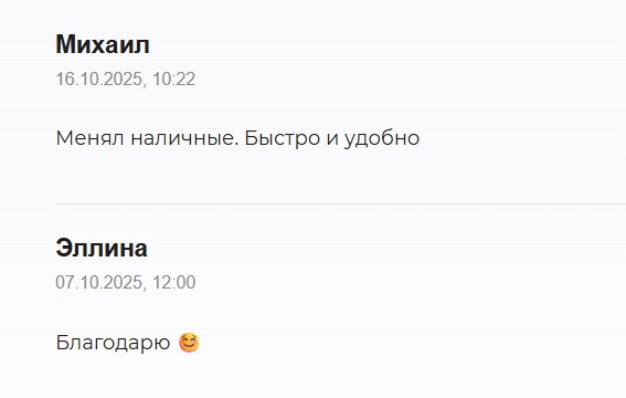 На сайте BitcoinShark Exchange можно найти несколько хвалебных комментариев. К примеру, некто Михаил в октябре 2025 года написал, что поменял наличные быстро и удобно. Но эти отзывы выглядят шаблонно, без подробностей, и доверять им сложно.