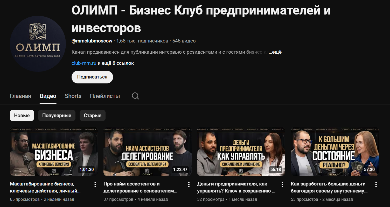 Ютуб-канал Mmclubmoscow собрал 1,68 тысяч подписчиков. За все время работы, с марта 2024 года, было выпущено более 500 роликов. Они собрали 675,6 тысяч просмотров. Контент появляется регулярно.