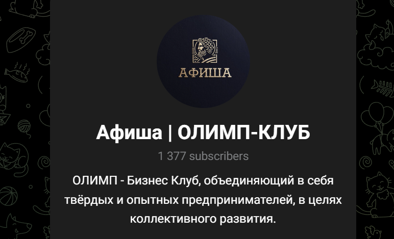 В телеграм-канале Olympclub1, который называется «Афиша ОЛИМП КЛУБ», удалось собрать 1,3 тысячи подписчиков. Площадка работает с 2023 года. Последние посты собирают 200-300 просмотров. Как и указано в названии, тут публикуются предстоящие события клуба и прочая информация. Пользователь может подключить информационный бот в Телеграме Olympclub1bot, который будет отсылать уведомление о предстоящих встречах.
