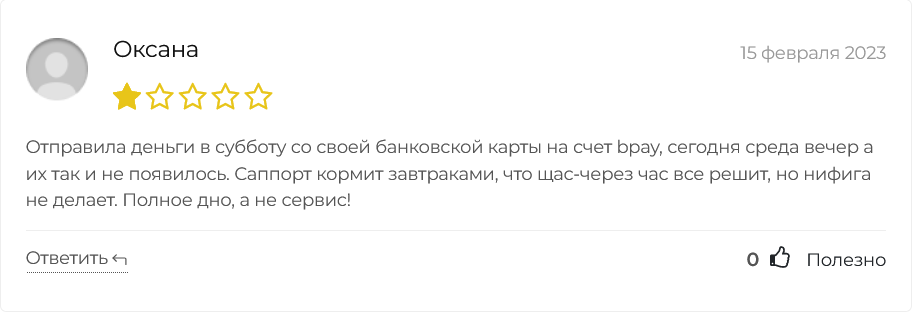 Однако есть в сети и жалобы пользователей. Люди рассказывают, что отправили деньги несколько дней назад, а зачисления так и нет, техподдержка «кормит завтраками».
