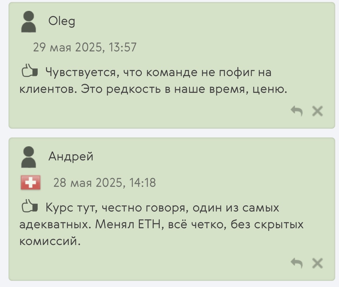Меняли крипту на данном ресурсе? Дайте свой честный отзыв на работу сервиса: быстро ли прошла операция, довольны ли вы размером комиссий, возможно, возникали какие-то проблемы и пр.