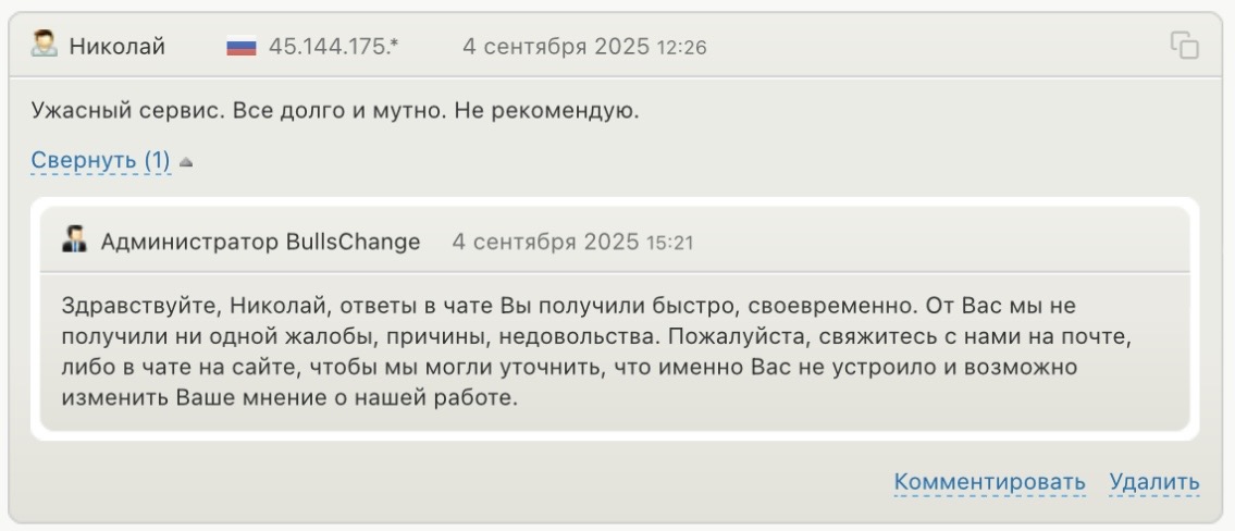 Оставьте Ваш отзыв о работе с Bullschange Com