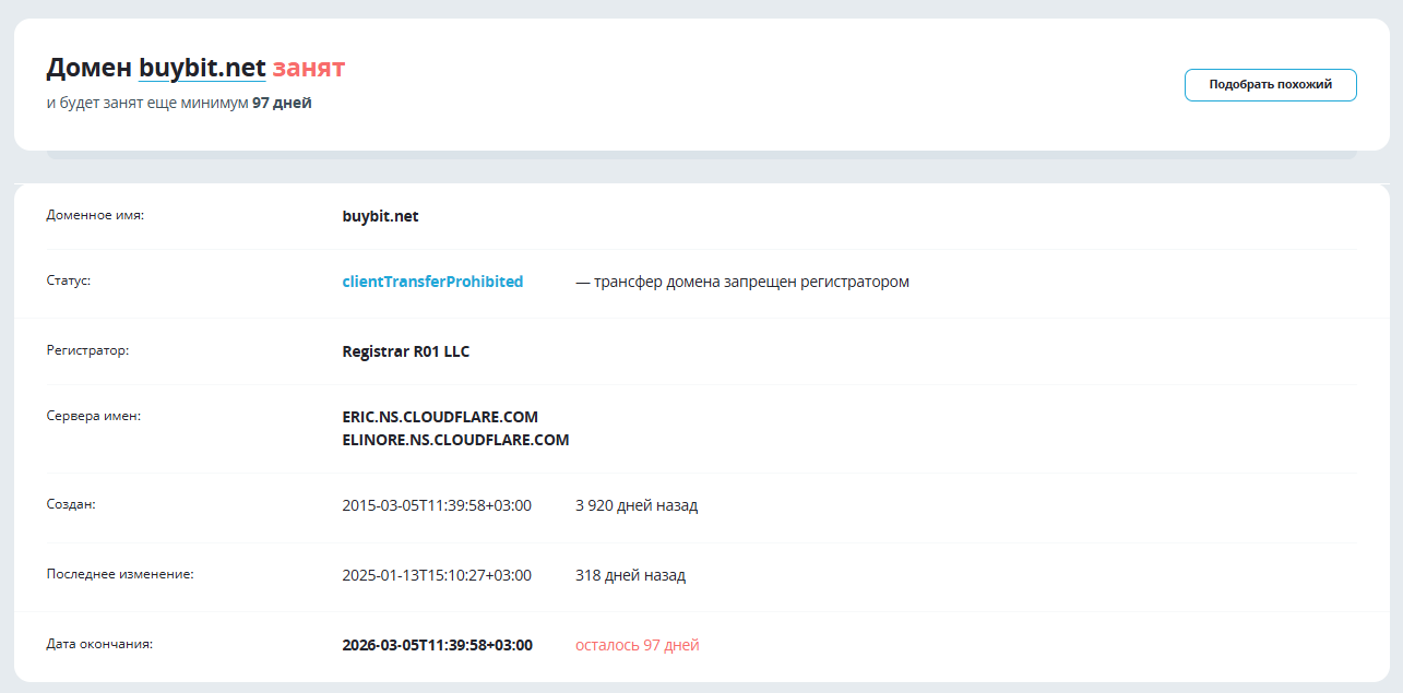 Главный адрес получен в 2015 году, а сайт buybit su работает с 2019 года – информации об их владельцах не представлено. Если проверить порталы через архив, то будут обнаружены совпадения, так как сервис действительно существует около 10 лет.