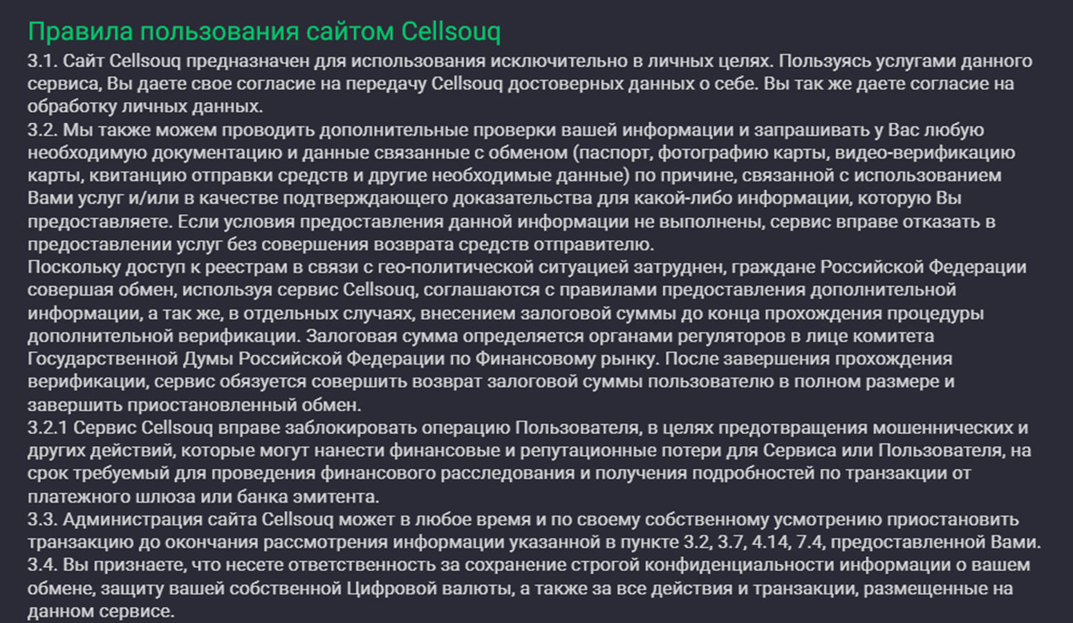 Безопасность Cellsouq com вызывает серьезные подозрения. Все дело в том, что ни одного документа на сайте обменника попросту нет. Не замечен сервис и в сотрудничестве с мониторингами, которые могли бы гарантировать легальность его работы.