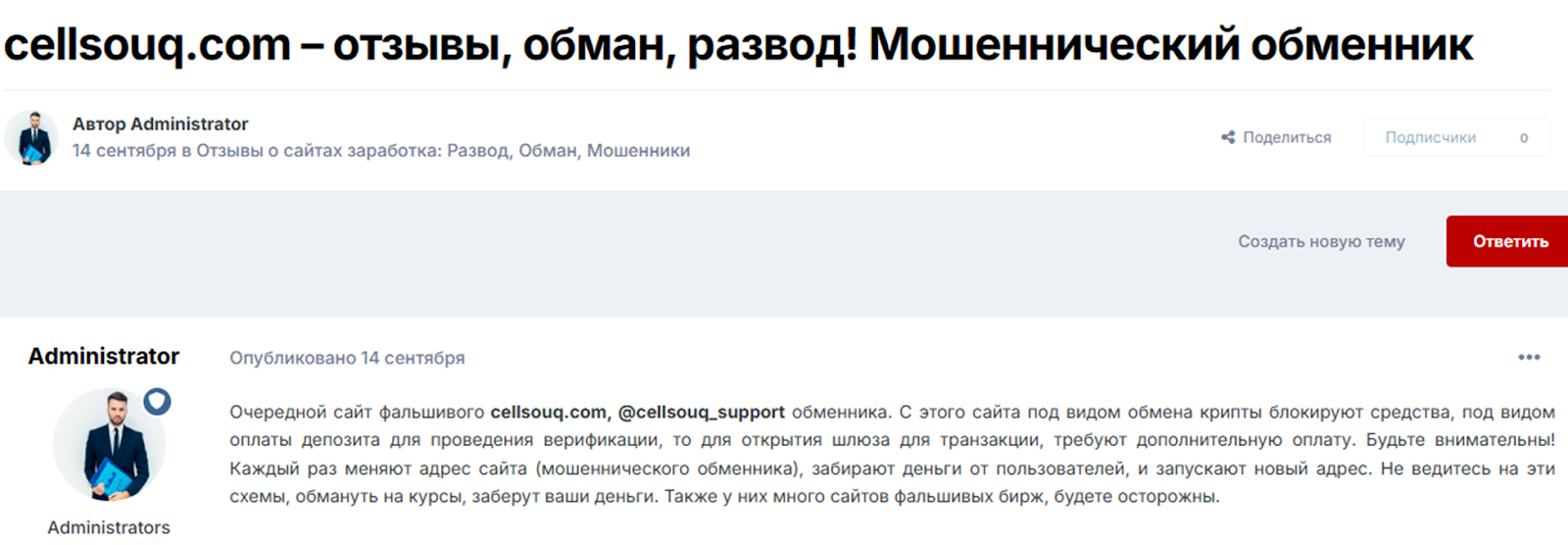 Данный факт объясняет, почему отзывов на Cellsouq на форумах почти нет. Но рейтинг доверия к проекту низкий и на многих экспертных сайтах он отмечен как фейковый.