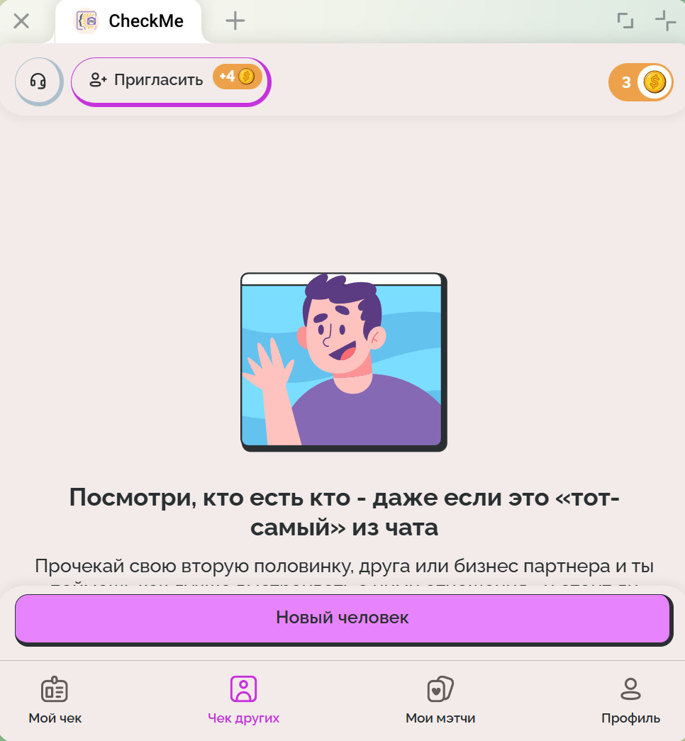 Бот CheckMe App Bot представляет собой интересное приложение для всесторонней оценки личности и поиска партнера. Помощник использует возможности искусственного интеллекта, чтобы оценить черты характера человека и его индивидуальные особенности.