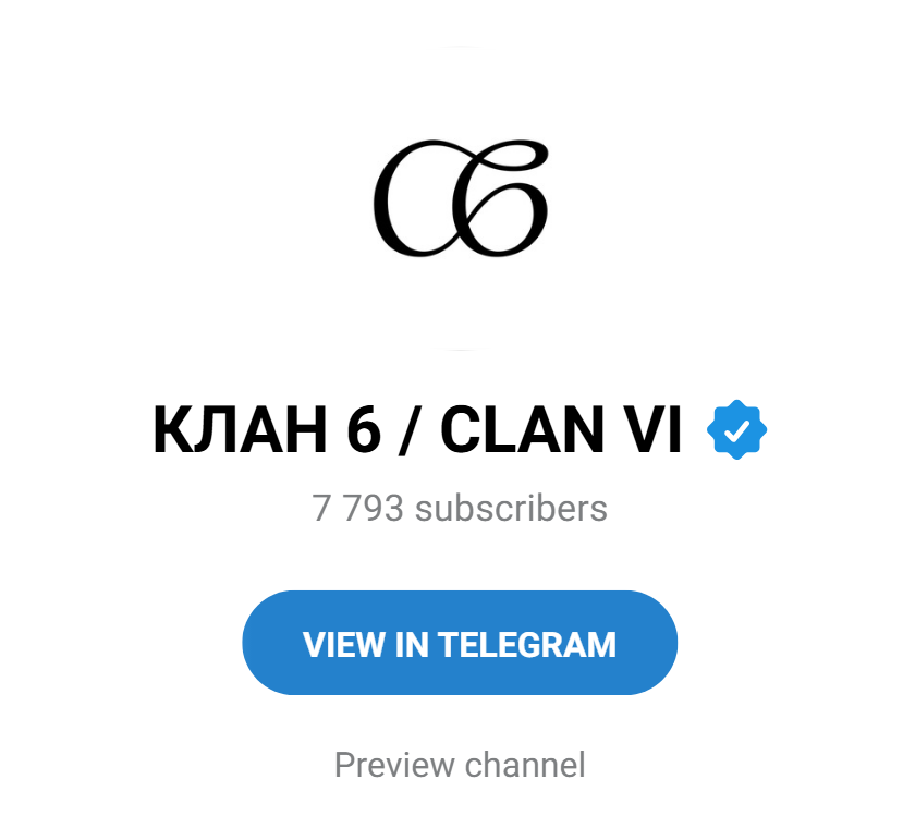 Телеграм-канал «КЛАН 6 CLAN VI» (clanvi) создан в 2016 году. На него подписано 7 793 человека. Просмотров набирается в среднем столько же. Реакций на посты немного. Комментарии открыты, чем фолловеры активно пользуются. Внешне проект не вызывает подозрений. Телеграм-аккаунт верифицированный.
