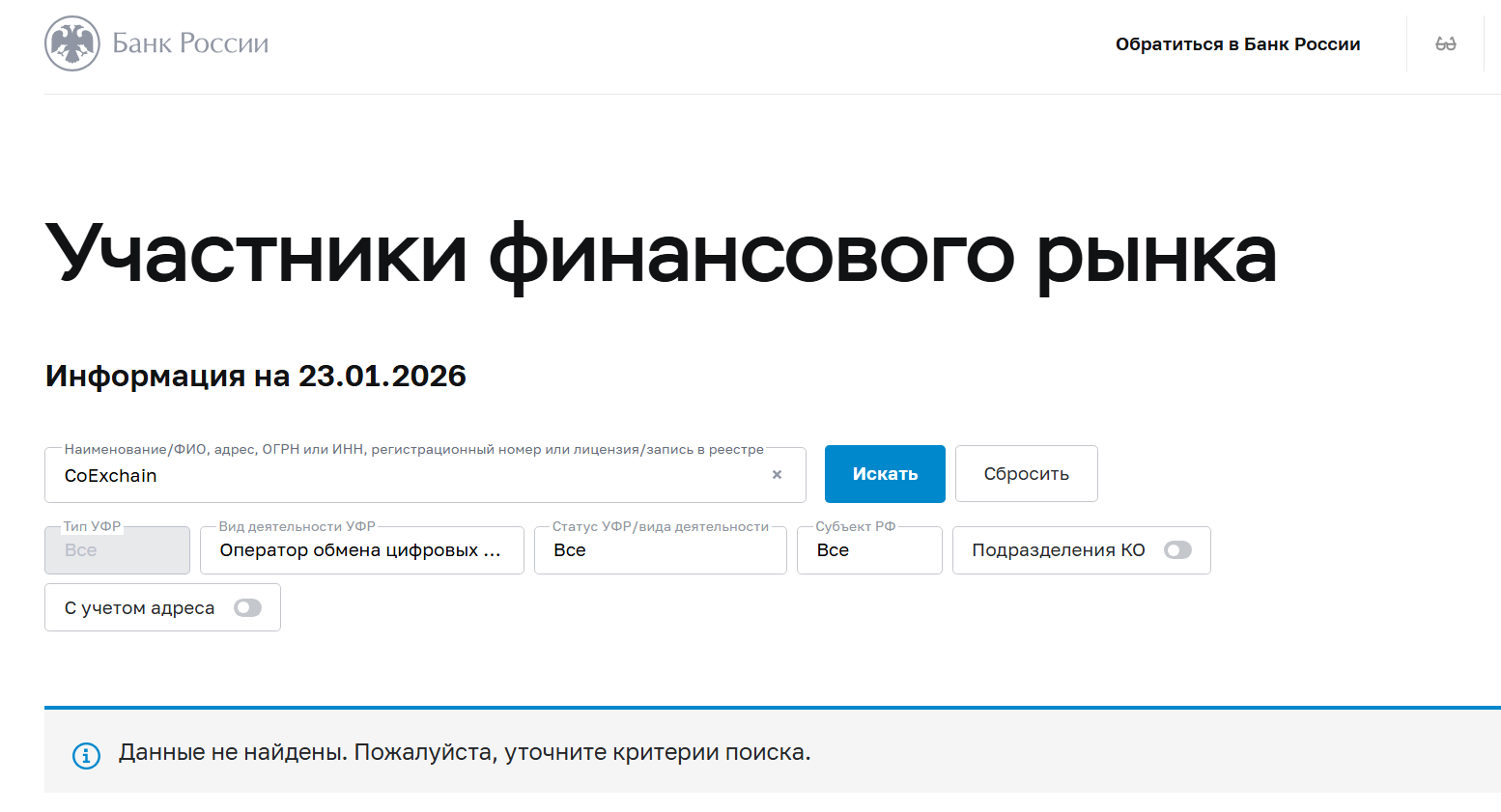 • не имеет лицензию ЦБ РФ;