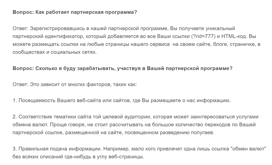 Обменник предлагает участие в реферальной программе. Точные размеры вознаграждений не указывает. Пишет только, что программа состоит из 6 уровней, а выплаты производятся на кошелек WebMoney в валюте WMZ. Награда начисляется конкретно за обмен, а не просто за регистрацию нового пользователя в этом сервисе.