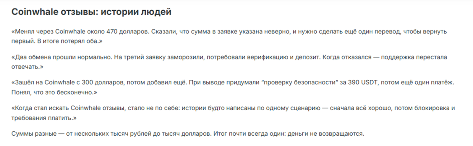 Но даже за такой короткий срок появились первые негативные отзывы на Coinwhale.