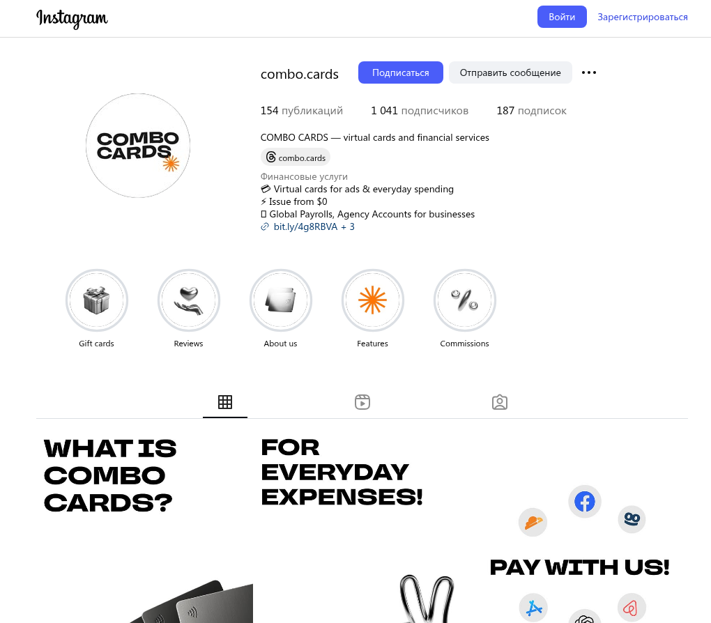 Контент здесь новостной, развлекательный и информационный. Комментарии открыты, но их никто не оставляет. Из лайков доступен только хорошие. В команде Combo Cards явно не хватает SMM-щика…