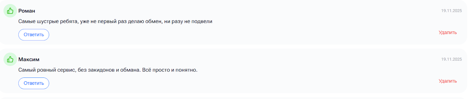 В Интернете можно обнаружить различные отзывы об обменнике CryptoFusion Pro, серди которых большинство положительные. Люди пишут, что операции проходят быстро, а сам сервис удобный.