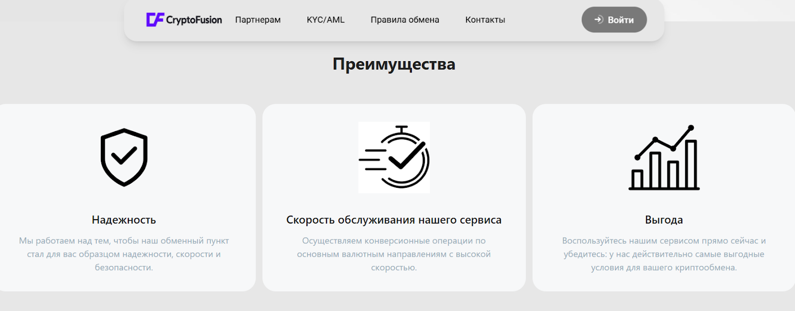 Среди важных качеств сервиса обмена Crypto Fusion на площадке выделены следующие преимущества: