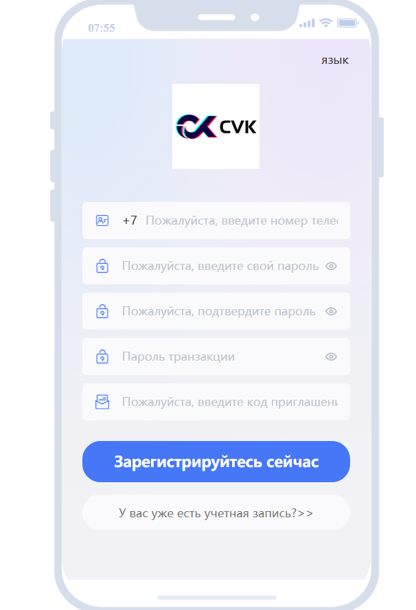 Официальный сайт сервиса для заработка в интернете Cvkshop cc не дает пользователям данных о проекте, а сразу предлагает войти или зарегистрироваться. Для входа нужен только номер телефона и пароль. Для регистрации требуется ввести код транзакции и пригласительный код. Соответственно, просто так пользователи не смогут завести учетную запись и им нужно получить приглашение от уже зарегистрированных людей. Это нередко встречается в скам-проектах, которые закрыты от сторонних посетителей. Код им требуется для фиксации того, кто привлек нового клиента и для работы с куратором.