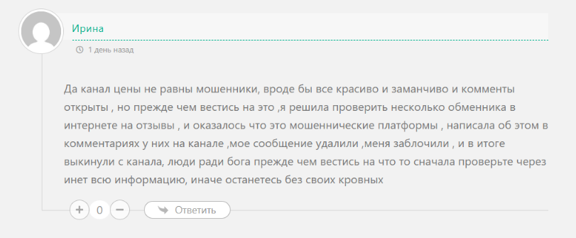 - В сети встречаются негативные отзывы о канале «Цены не равны», что говорит о наличии обманутых подписчиков.