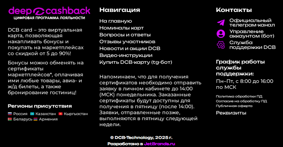 Участниками программы могут стать жители России, Казахстана, Кыргызстана, Беларуси и Армении. Сам источник Deep Cashback был создан в России 29 января 2025 года, поэтому это относительно новый проект.