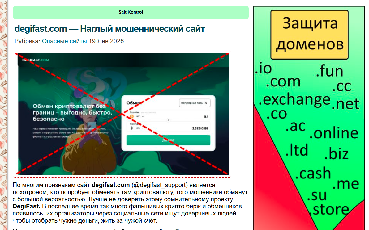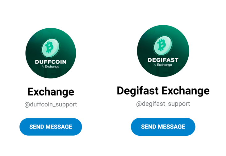 Ранее обменник фигурировал под брендом Дуфкоин, а тг аккаунты поддержки @ duffcoin support переместились на @ degifast support, при этом оформление, логотип и подача без изменений.