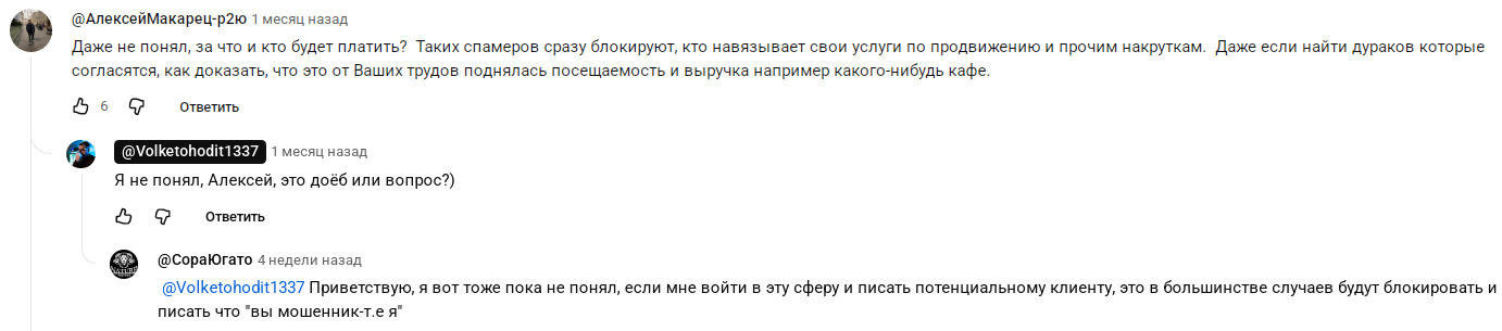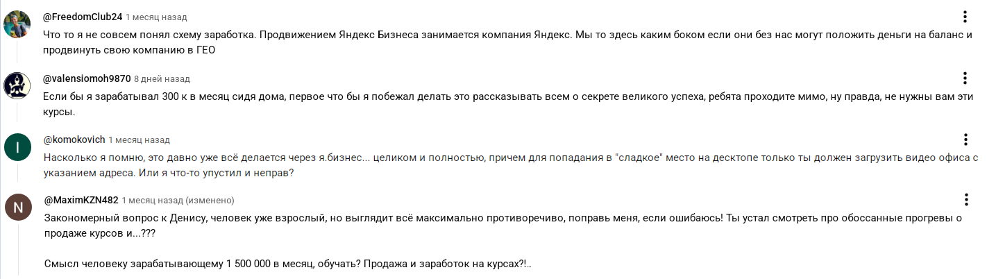 Пользователи под роликами на «Ютьюбе», выкладываемыми маркетинговым «экспертом», оставляют негативные комментарии.