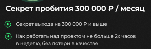 Опытный коуч заявляет, что студенты легко могут выйти даже за порог 300 000 рублей в месяц благодаря обучению в онлайн-школе. При этом работать нужно будет не больше 2-х часов в день.