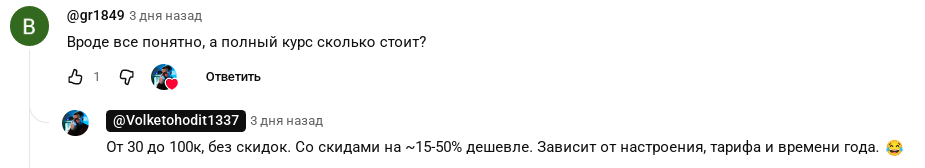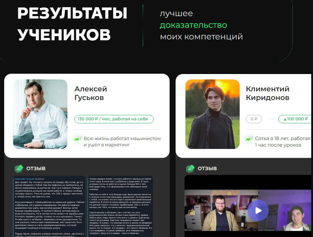Юзеры пишут, что якобы окупили курс с первой же клиентской заявки. После просмотра нескольких часов видео уроков опытного коуча люди утверждают, что буквально сразу же смогли заработать тысячи и десятки тысяч рублей.