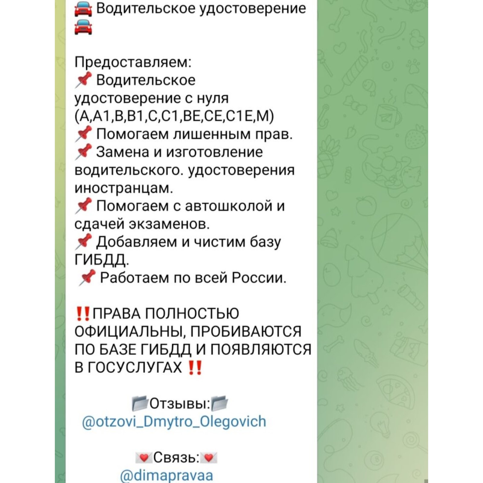 Телеграмм аккаунт Dimapravaa отзывы в сети получил негативные. Дмитрий Олегович предлагает услуги по оформлению водительских удостоверений с нуля, а также обещает помощь лишенным прав пользователям, уверяя в честной работе. Далее мы расскажем все, что известно о проекте.