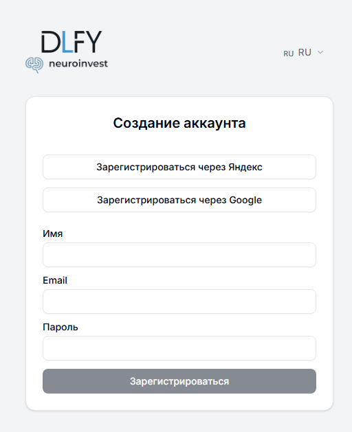 Регистрация на сайте Dlfy Ai
