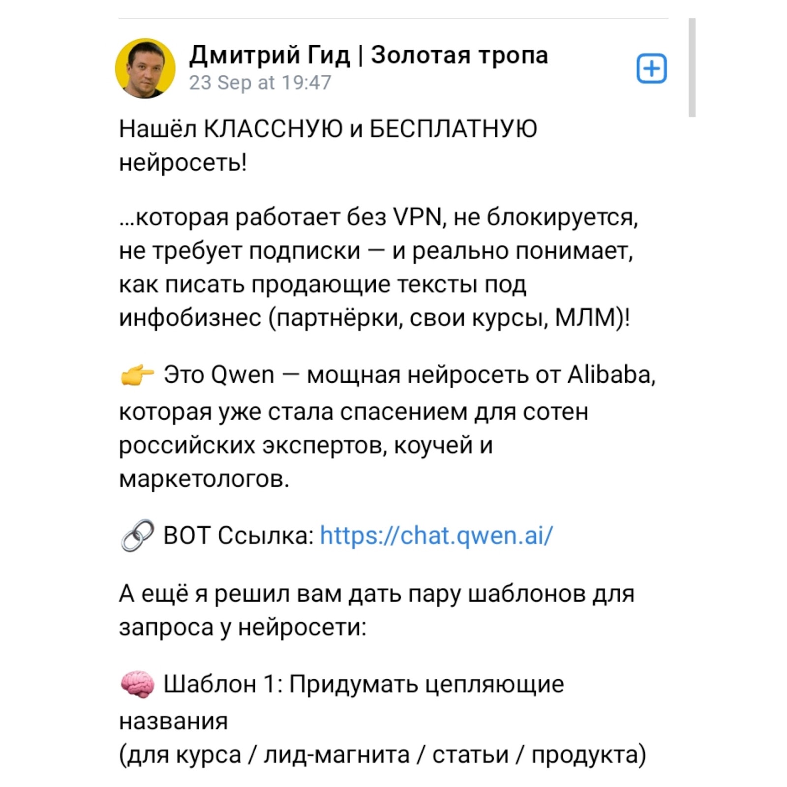 В паблике размещены публикации по заработку на площадке ВКонтакте, владелец канала делится инструкциями по продвижению, предоставляет идеи продающих постов. Плюс, рассуждает на тему реферальных программ. Во время обзора группы мы заметили продвижение чужих проектов, например нейросетей.