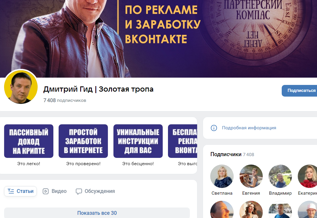 На ресурсе указано, что предоставлен мастер-класс по заработку на партнерках. Во время проведения пользователи увидят примеры по получению прибыли, получат советы для новичков и рекомендации по выходу на заработок в 100+ тыс. руб. в мес. Для связи с автором программ оставлен е-мейл info dimagrid ru.Анализ группы ВК