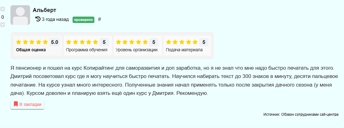 В сети присутствуют довольно спорные упоминания об авторе. Ранние положительные отклики чаще всего хвалят понятное объяснение базовых инструментов, системность и поддержку в чате. Люди пишут, что научились быстрее печатать, освоили транскрибацию и получили первые заказы на биржах. Многие отмечают удобную структуру уроков, где теория сразу закрепляется простой практикой.