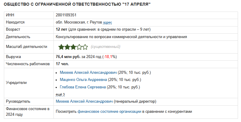 В реальности сетью владеет ООО «17 Апреля», существующее более 12 лет и зарегистрированное в Москве. Вероятно, упомянутый портал связан с одним из региональных представителей франшизы DoBro Coffee, который занимается перепродажей права на участие во франшизе.