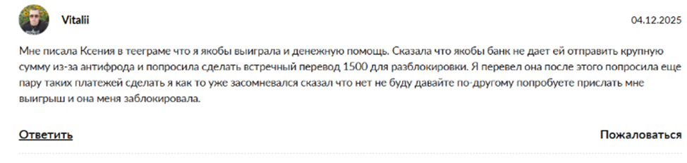 Отзывы о телеграм-канале «Добро достигающее цели» содержат жалобы на мошеннические действия автора сообщества. Отмечается, что блогер обещает крупные суммы в качестве выигрыша. Но сначала требует перевести деньги, которые якобы нужны для снятия ограничений со стороны банка. На самом деле автор канала забирает средства пользователей себе, а сама ничего не выплачивает. Жертвы мошенничества не рекомендуют сотрудничать с данным каналом.