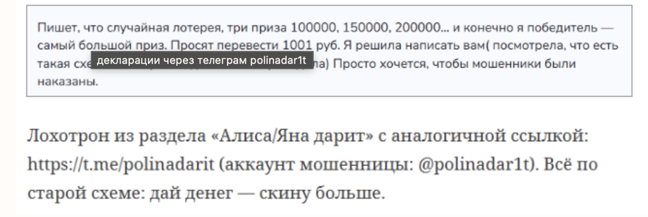 Репутация Polinadar1t телеграмм: отзывы пострадавших
