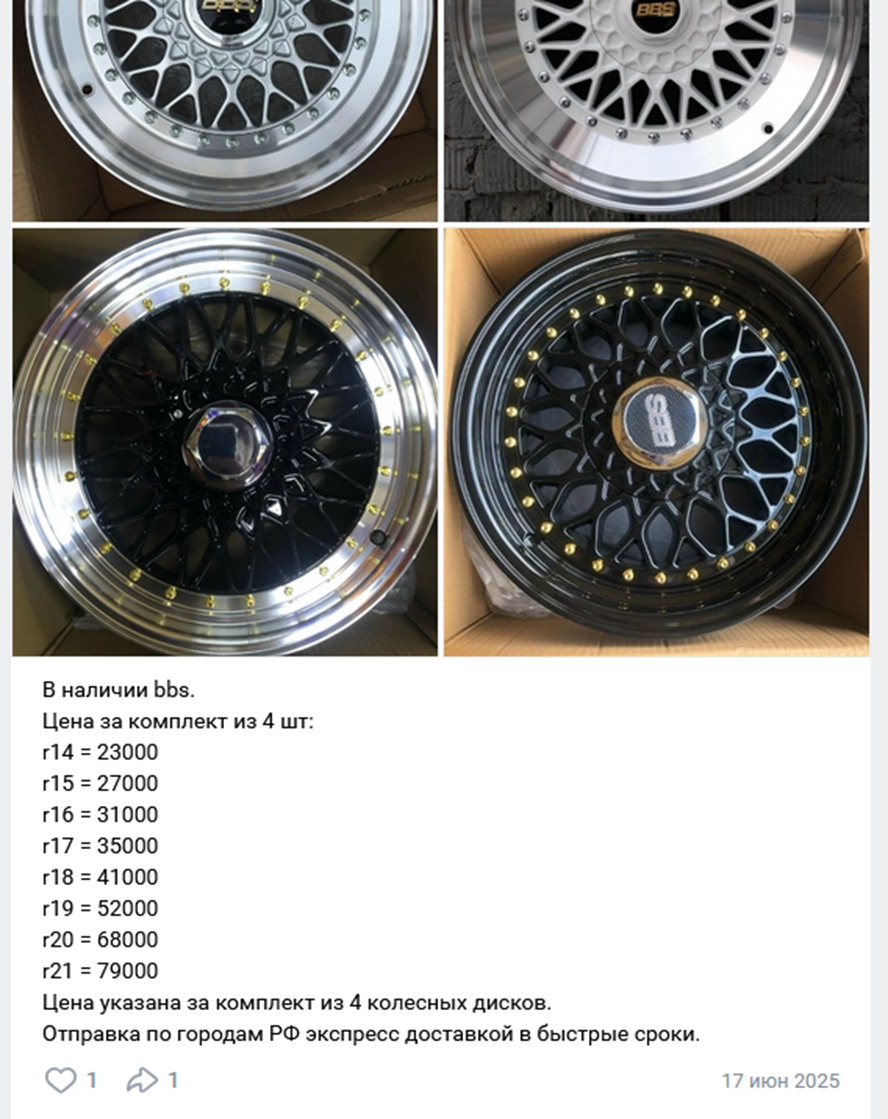 Dom Diskov | Diski I Shiny предлагает продажу автодисков и покрышек по выгодным ценам, заявляет о наличии всех популярных типоразмеров. Работает только по 100% предоплате. Заказ можно оформить через официальные аккаунты магазина в социальных сетях. Дом Дисков Диски и Шины отзывы Телеграмм пользователей пока не получает. Но комментарии в каталоге Вконтакте вызывают сомнение в достоверности и надежности работы компании.